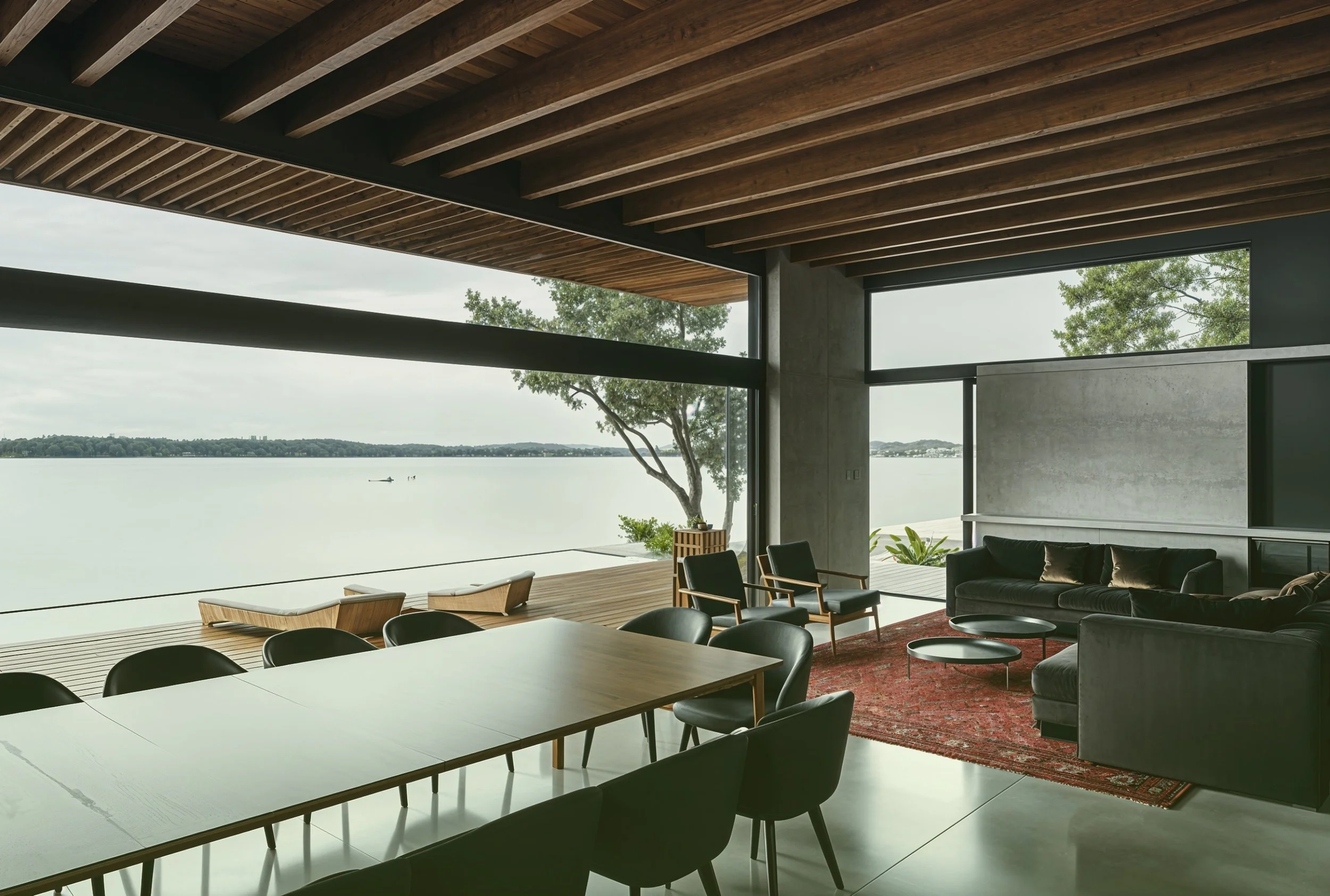 A lakeside home shaped around a single idea: the horizon.