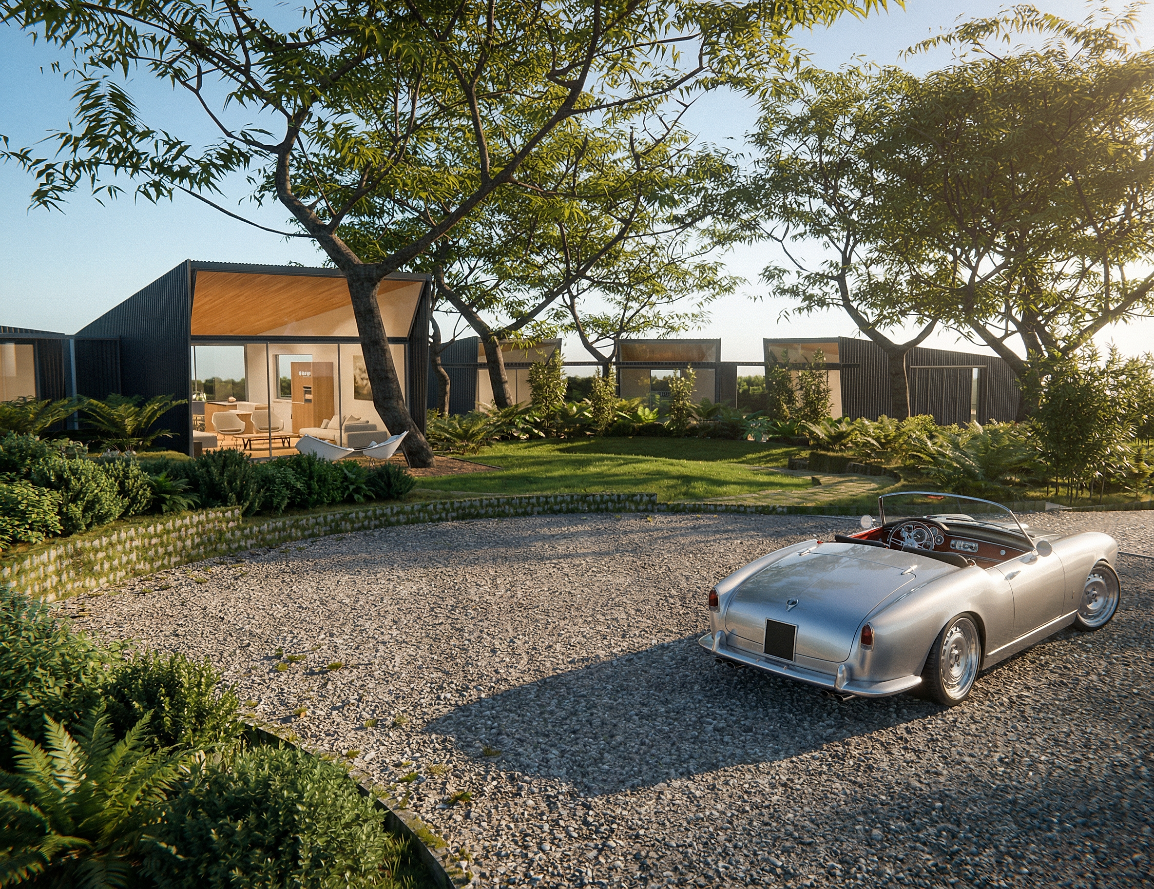 Together, the project balances the precision of automotive culture with the warmth of living space, where machines and architecture share the same language of craft and restraint.